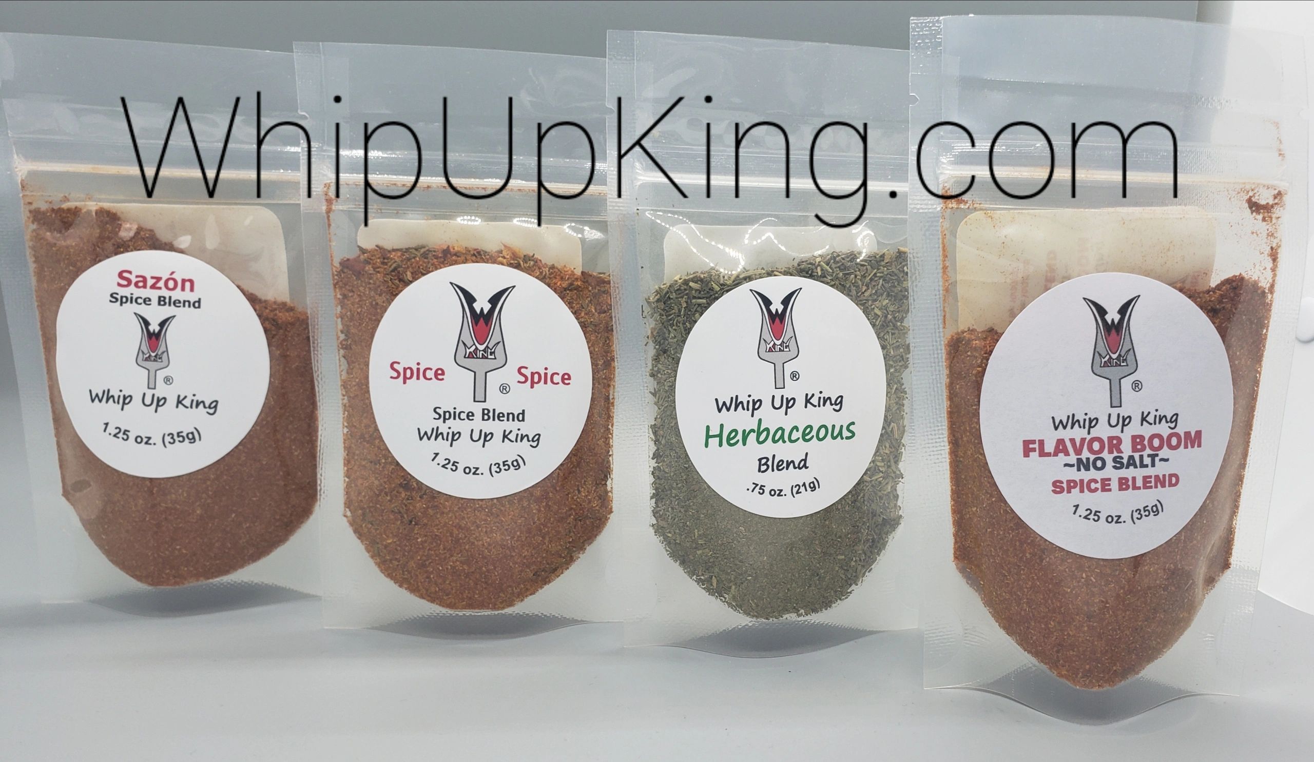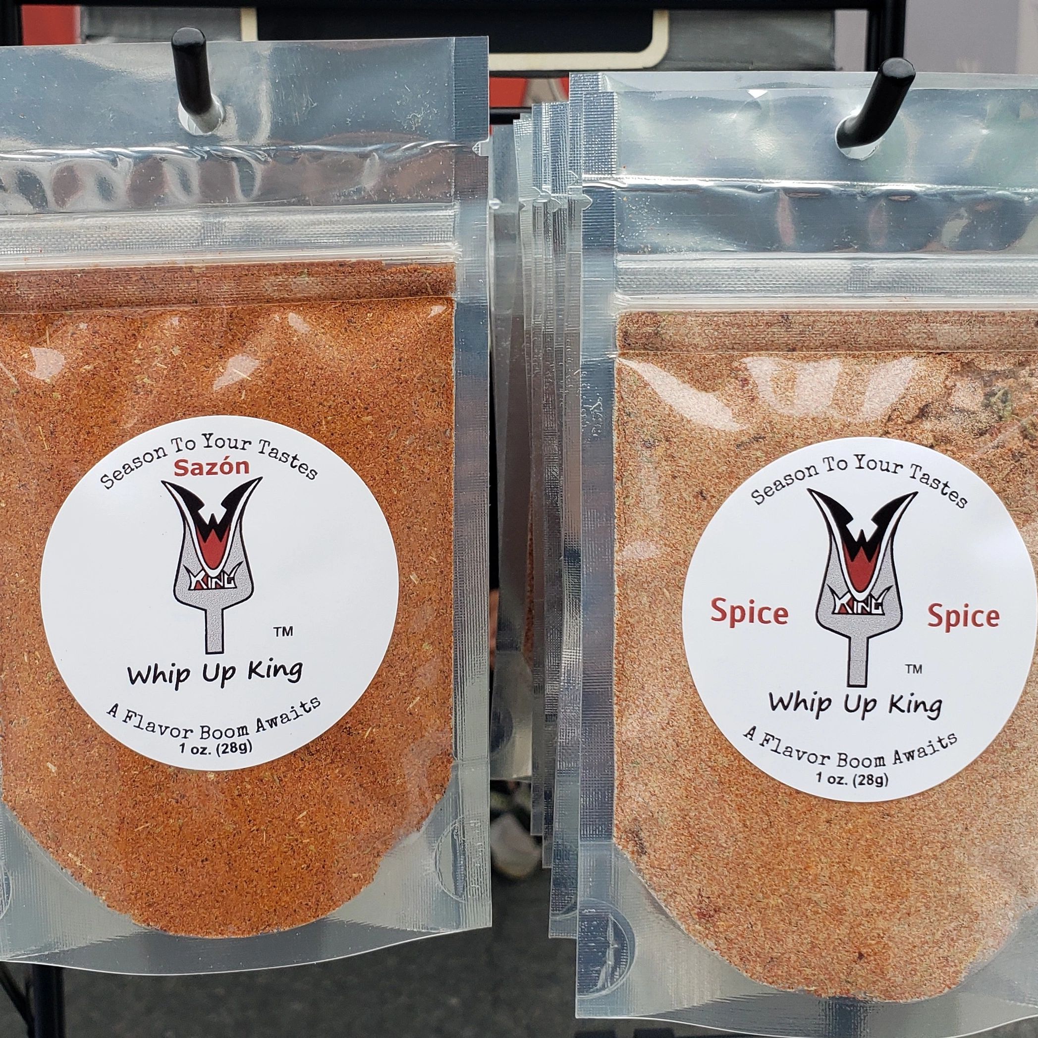 WUK♔ [Whip Up King] Signature Sazón and Spice Spice are ALL PURPOSE spice blends ready for use in YOUR KITCHEN. WUK♔ brings the Flavor Boom to your spice cabinet with a spice combination only WUK can provide. Grab WUK♔, season to your tastes, and a FLAVOR BOOM awaits!